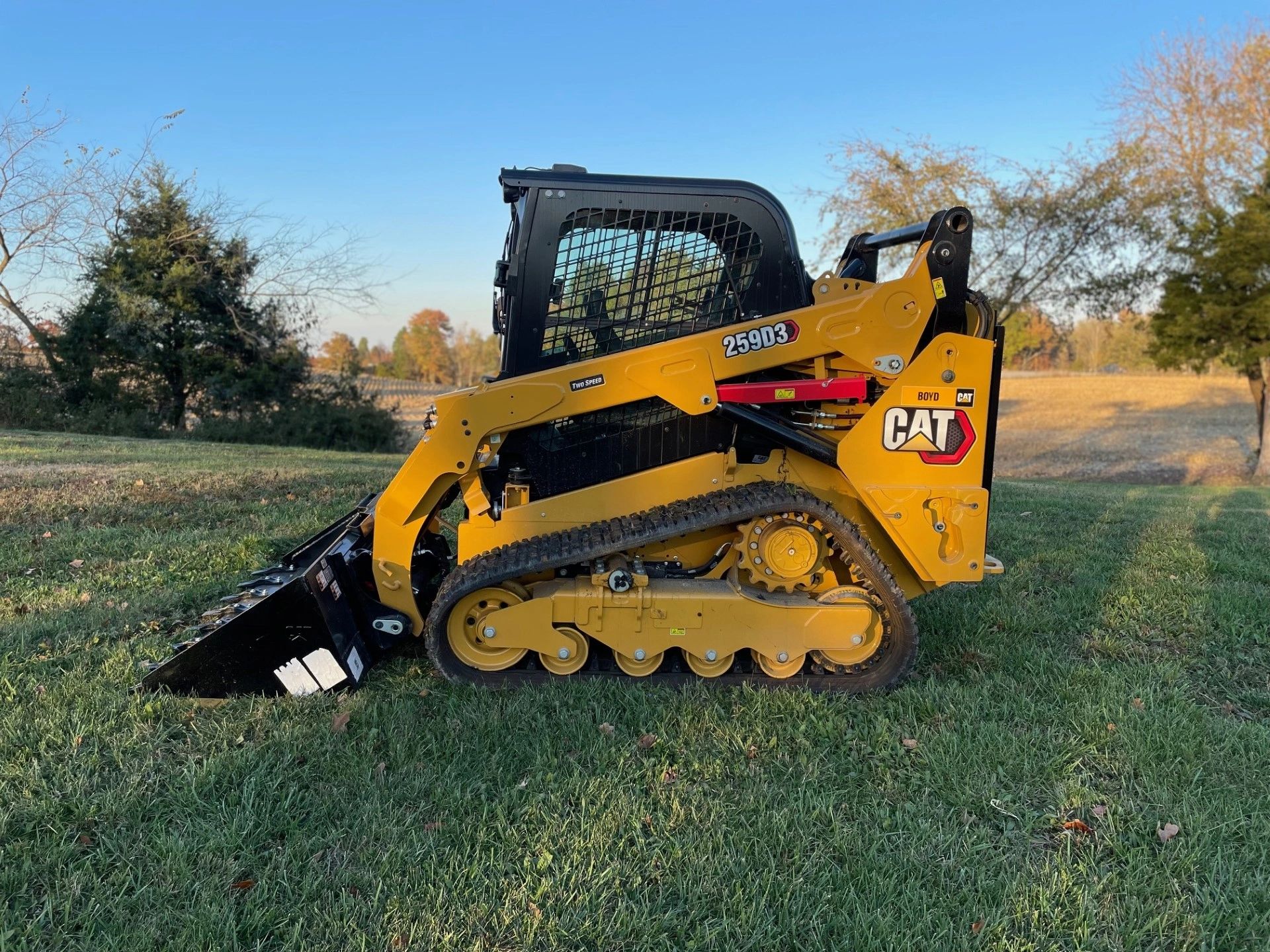 The Cat® 259D3 Compact Track Loader, with its vertical lift design, delivers extended reach and lift height for quick and easy truck loading. Its standard, suspended undercarriage system provides superior traction, flotation, stability and speed to work in a wide range of applications and underfoot conditions.